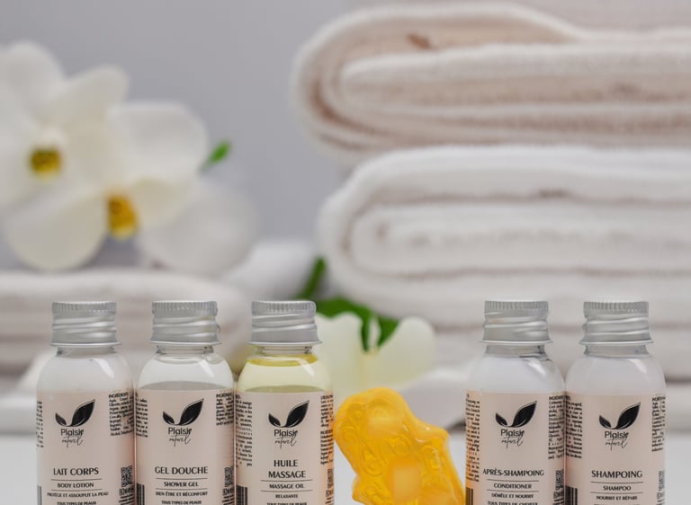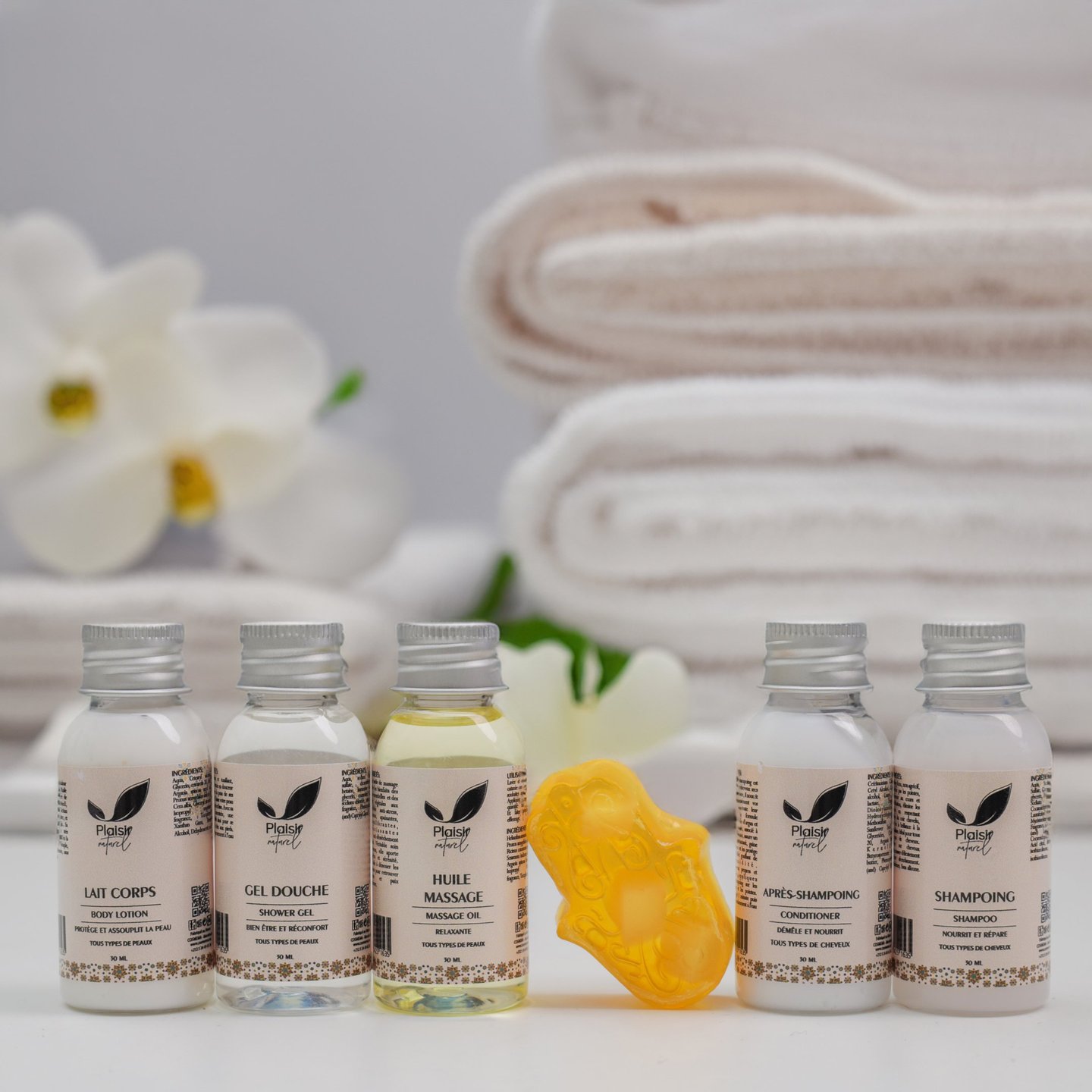 Accueillez vos clients avec l'excellence et la pureté des produits d'accueil Plaisir Naturel. Conçus pour offrir une expérience luxueuse et mémorable, nos produits d'accueil combinent des ingrédients naturels de haute qualité et des parfums délicats pour ravir vos invités.